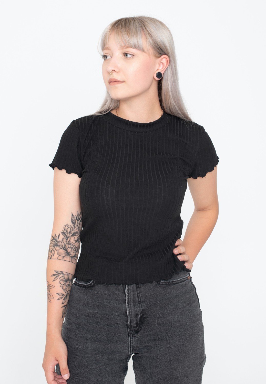 Urban Classics - Ladies Short Rib Black - T-Shirt - black - XS - 95% Rayon, 5% Elastane,Jersey - black - XS - 95% Rayon, 5% Elastane,Jersey