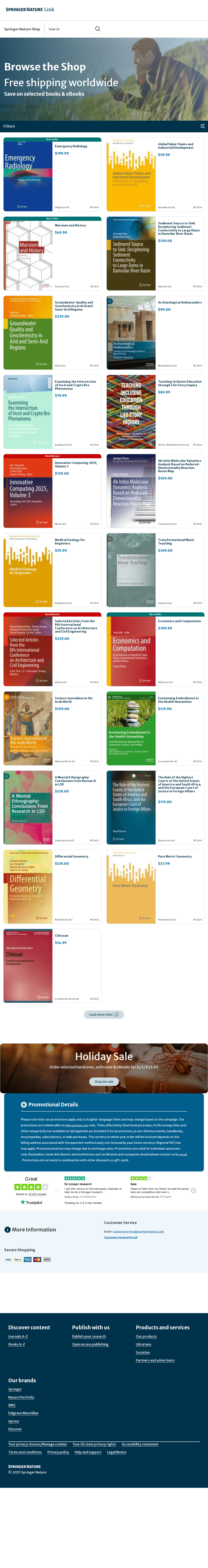 Springer is a leading global scientific, technical and medical portfolio, providing researchers in academia, scientific institutions and corporate R&D departments with quality content through innovative information, products and services. The 316,684 books come with free worldwide shipping, and our eBooks can be read immediately on any device.